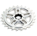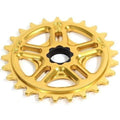Requires no sprocket bolt. Instead, it has a hardened CrMo steel insert in that matches up to the 48 splines on the crank axle for pure, direct power transfer. Available for 19mm splined axles only. 1/8″ tooth width for use with most freestyle/street & single speed chains.