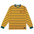 Welcome 100% cotton regular fit Icon Stripe Long sleeve T-Shirt, Gold, teal, pink and white horizontal stripes throughout, with logo graphic embroidered at left chest.